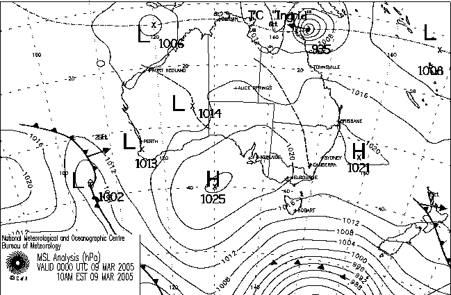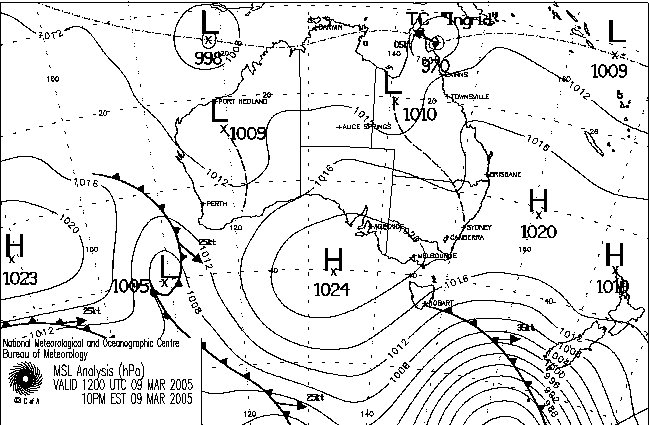 Bureau of Meteorology rose from 930hPa at 10pm last night to 935 at 4am, 950