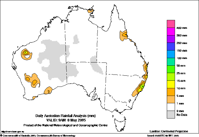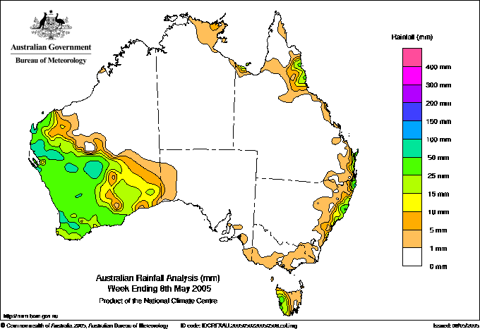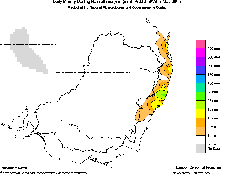 includes the top 5 totals nationally followed by all reported falls of 50mm or more. |