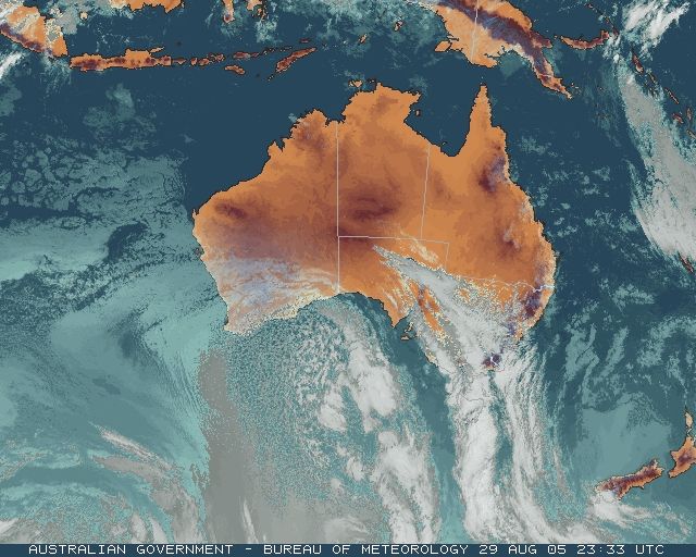 The strong northwesterly airstream shown on the surface charts above produced an exceptionally warm August night across a broad slice of SE AUS. Minima this morning were up to 15.7C above normal in SA, while in TAS both the State and Hobart City records fell by large margins. The only sub-zero minimum in the country was -0.4 at Glen Innes. High overnight temperatures followed an exceptionally warm day yesterday, when at least seven locations in TAS set new August maximum temperature records. Fresh to strong winds and a blanket of cloud during the night helped reduce the normal overnight cooling.
