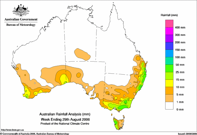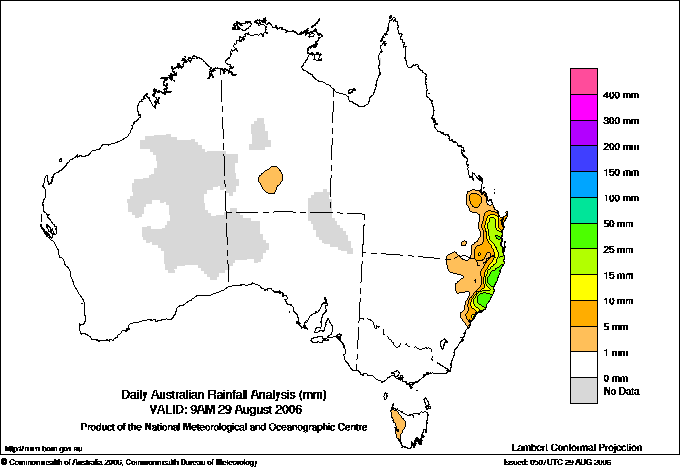 includes the top 5 totals nationally followed by all reported falls of 50mm or more. |