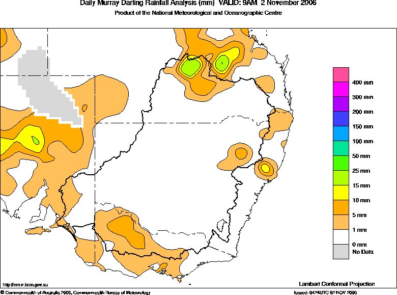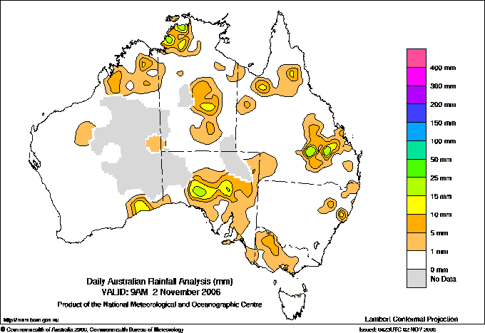 includes the top 5 totals nationally followed by all reported falls of 50mm or more. |