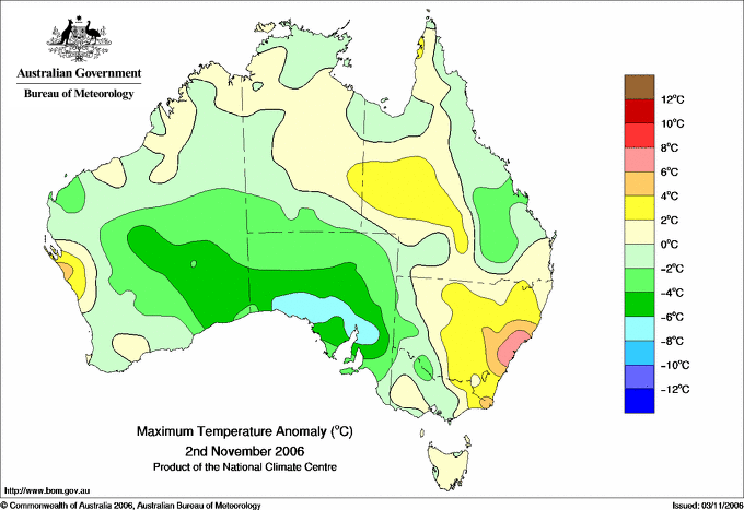 | Lowest maximum temperature | Greatest variation below normal maximum |