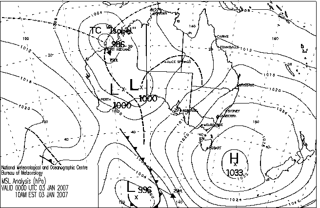 WA: Wintry outbreak brings record January cold. The north-south trough clearly visible through WA on the surface charts in The Day in Charts below fed vast amounts of moisture from TC Isobel into the state today, creating the extensive, deep cloudmass that dominates the satellite cloud images of Australia. At the same time, a tongue of very cold air for mid summer moved into the state from the southwest accompanied by a broad, deep upper low (see box below). Twenty-one centres, from the Gascoyne to the Central Wheatbelt and west to Perth, recorded their coldest-ever January day (see records). Perth Airport and Cunderdin, with around 60 years of climate history, both shaved half a degree off their previous records, while Dalwallinu (49 years) cut 1.7 and Wongan Hills (42 years) cut 2.6 off their previous lows.
