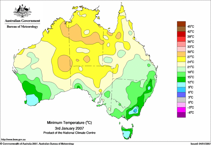 NSW: A hot and very dry year. 2006 was the tenth consecutive year of above average statewide maximum and minimum temperatures. In the Murray-Darling Basin, it was the third driest year since 1900, while daytime maximum temperatures were the second highest on record. In Sydney, maximum temperatures were the third highest on record. Full reports for the state and Sydney.