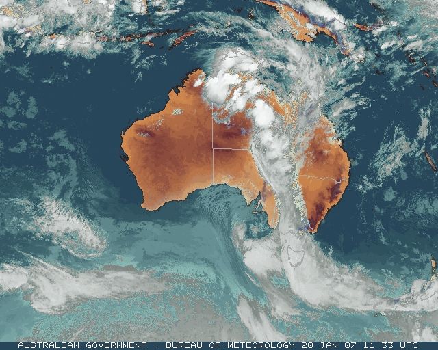 NT, SA, VIC, NSW: Widespread record rain brings flooding. As the records section below shows, rainfall records tumbled across much of SA, western VIC and the extreme south of the NT in the 24 hours to 9am. The surface pressure charts and satellite cloud images below show the reason for the unusually widespread nature of the falls. The monsoon trough dips from the WA Kimberley to a deep low east of Alice Springs before arcing N and NE to more normal latitudes across Cape York Peninsula. Meanwhile, a complex Southern Ocean low moved SE close to the SA coastline today, dragging its attendant trough across SA and into NSW and VIC. Northerly winds ahead of these two troughs pulled monsoonal moisture into northern SA during Thursday, and on into southern SA on Friday and western NSW and VIC today. This plume of tropical moisture has been uplifted by the advancing southern trough, providing the trigger for the unusually widespread heavy falls and severe thunderstorms. The movement of the system has also been very slow, resulting in heavy rain falling for longer in any one location.