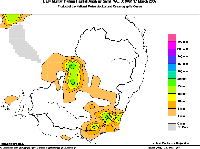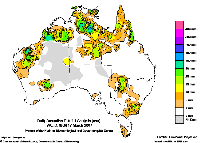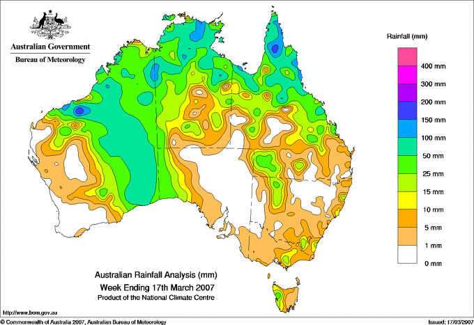 includes the top 5 totals nationally followed by all reported falls of 50mm or more. |