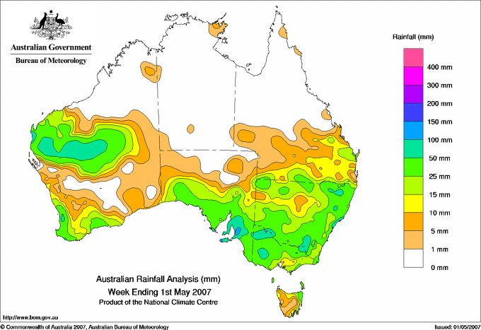 includes the top 5 totals nationally followed by all reported falls of 50mm or more. |