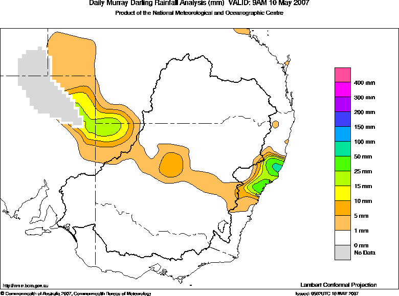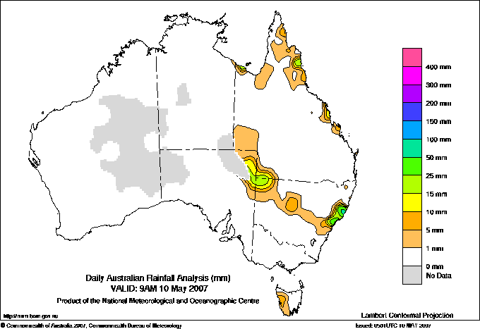 includes the top 5 totals nationally followed by all reported falls of 50mm or more. |