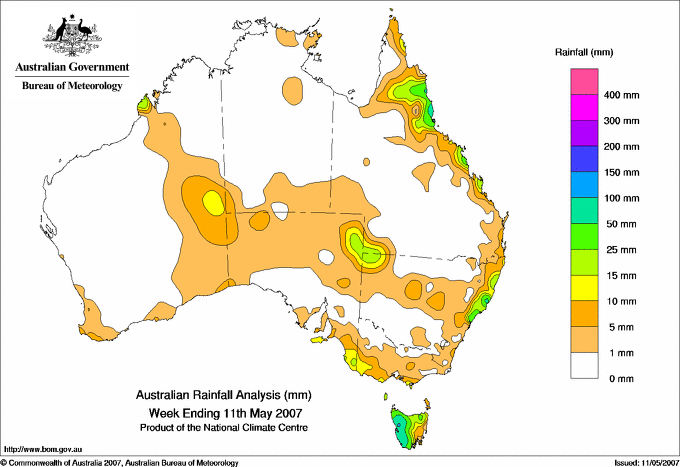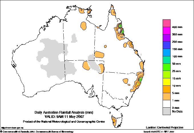 includes the top 5 totals nationally followed by all reported falls of 50mm or more. |