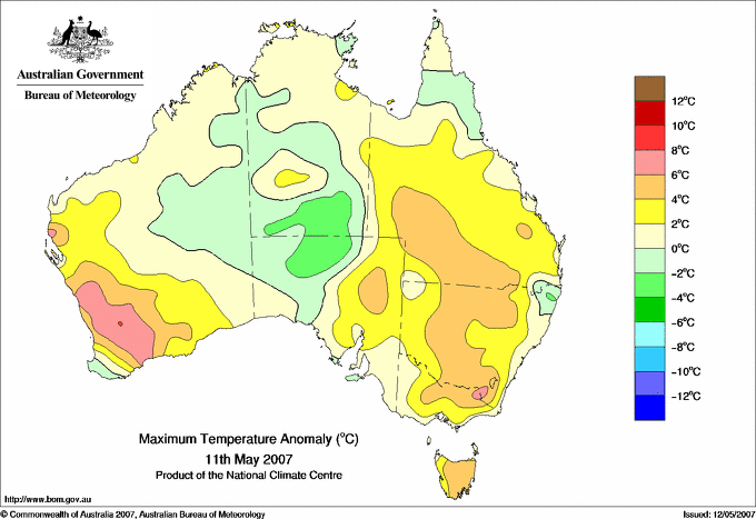 | Lowest maximum temperature | Greatest variation below normal maximum |