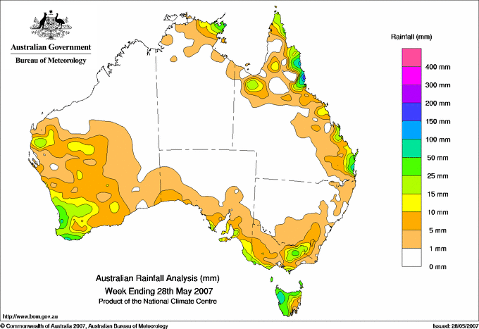 includes the top 5 totals nationally followed by all reported falls of 50mm or more. |