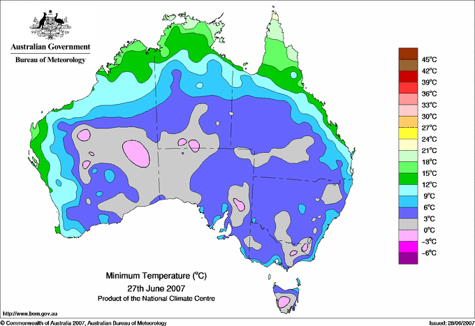 - Canberra: Extensive snow settling to the 1000m level was reported on the ranges west of Canberra at 9am. Captains Flat SES reported heavy overnight snow settling in their area and across to Bungendore.