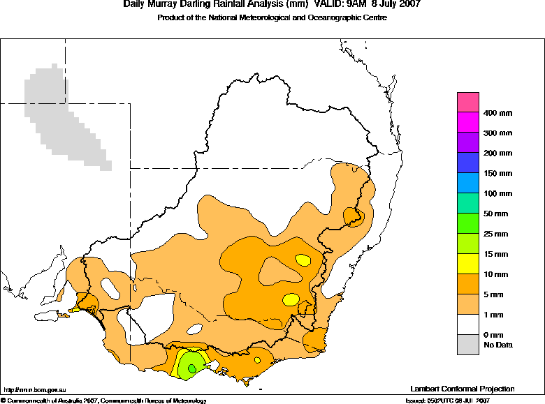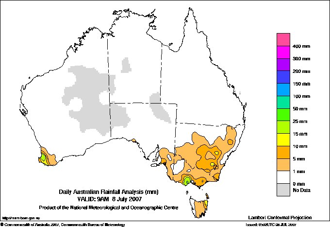 includes the top 5 totals nationally followed by all reported falls of 50mm or more. |