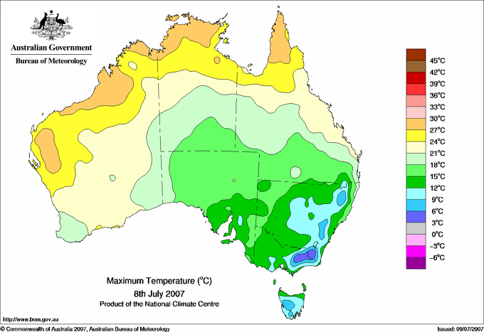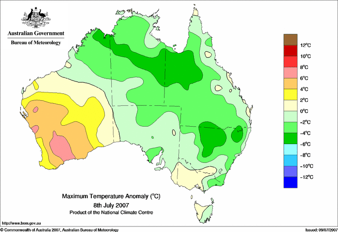 | Lowest maximum temperature | Greatest variation below normal maximum |