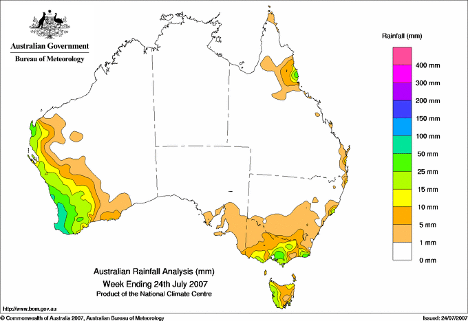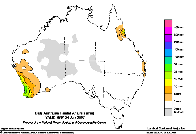 includes the top 5 totals nationally followed by all reported falls of 50mm or more. |