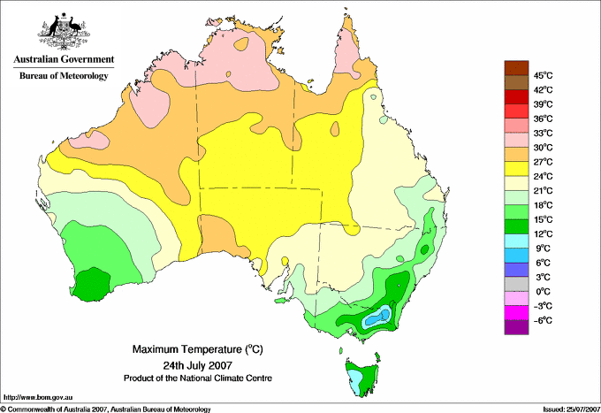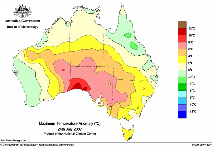 | Lowest maximum temperature | Greatest variation below normal maximum |