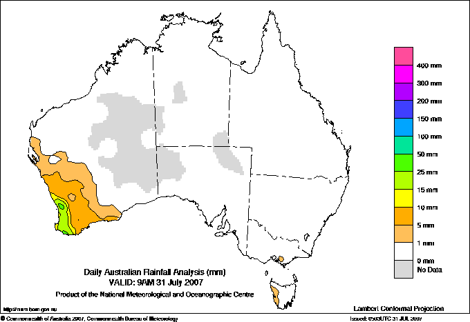 includes the top 5 totals nationally followed by all reported falls of 50mm or more. |