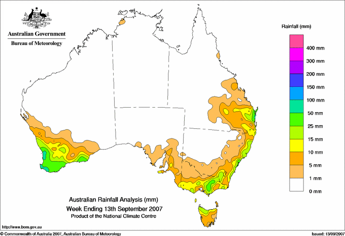 includes the top 5 totals nationally followed by all reported falls of 50mm or more. |