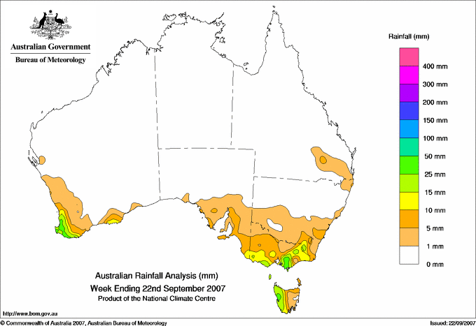 includes the top 5 totals nationally followed by all reported falls of 50mm or more. |