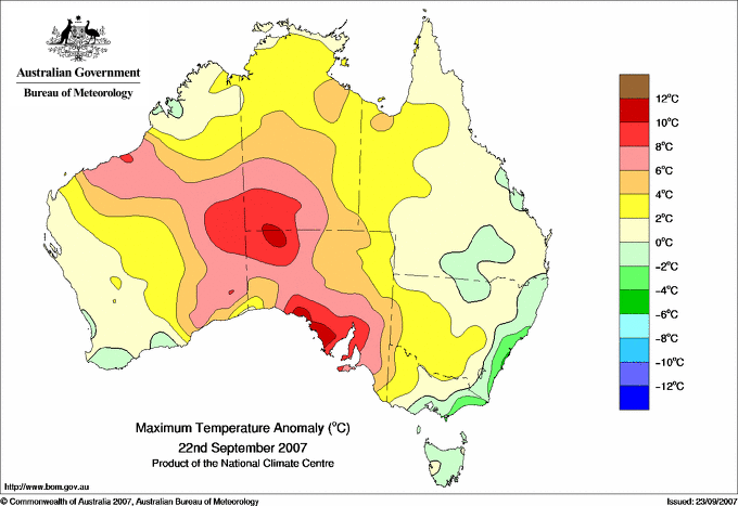 | Lowest maximum temperature | Greatest variation below normal maximum |