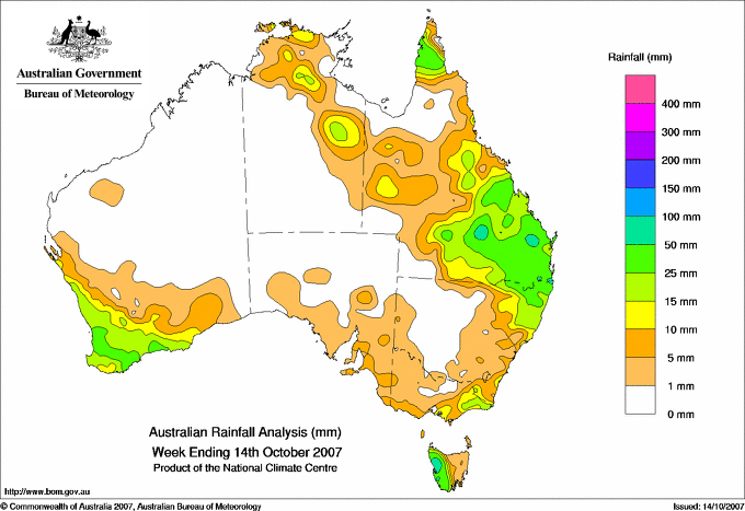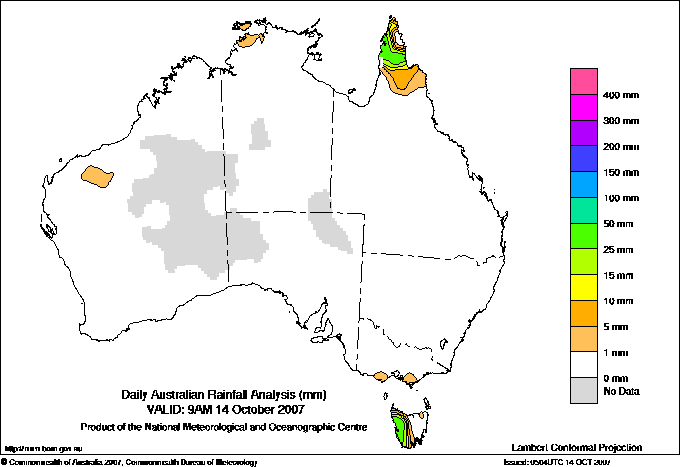 includes the top 5 totals nationally followed by all reported falls of 50mm or more. |