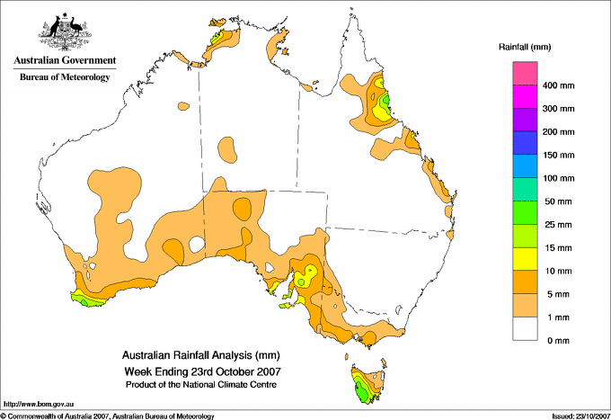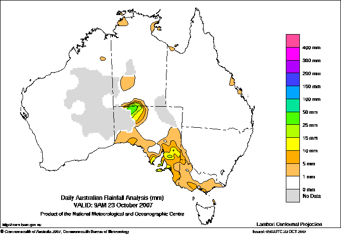 includes the top 5 totals nationally followed by all reported falls of 50mm or more. |