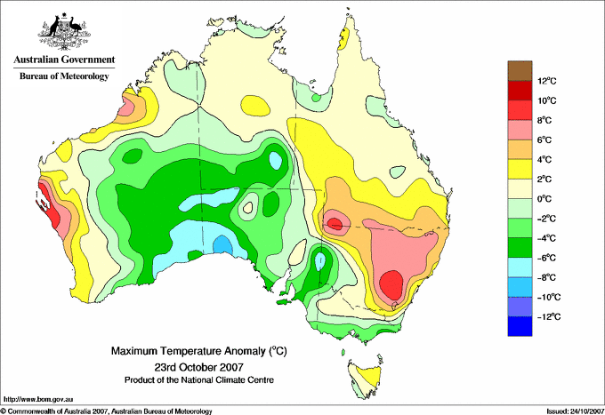 | Lowest maximum temperature | Greatest variation below normal maximum |