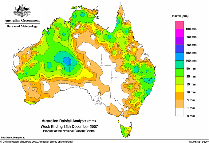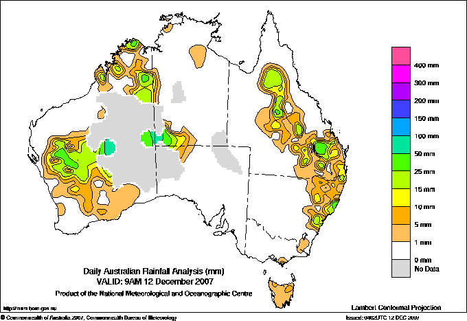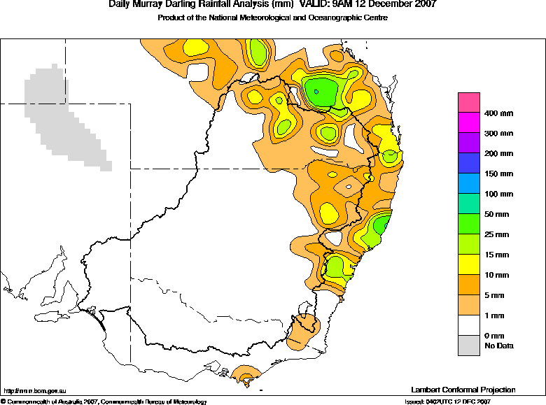 includes the top 5 totals nationally followed by all reported falls of 50mm or more. |