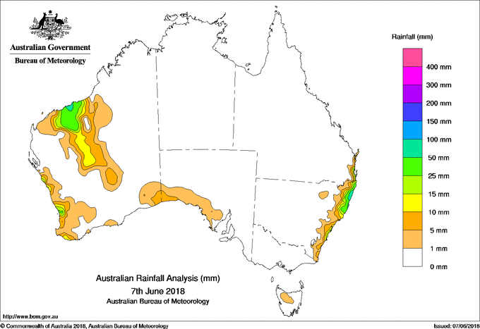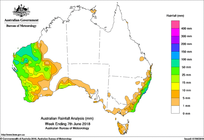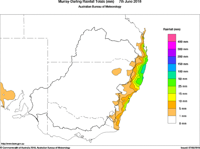includes the top 5 totals nationally followed by all reported falls of 50mm or more. |