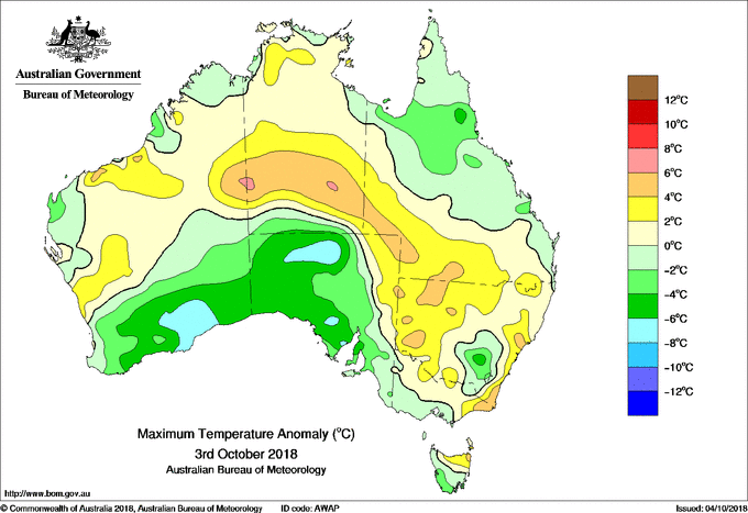 | Lowest maximum temperature | Greatest variation below normal maximum |