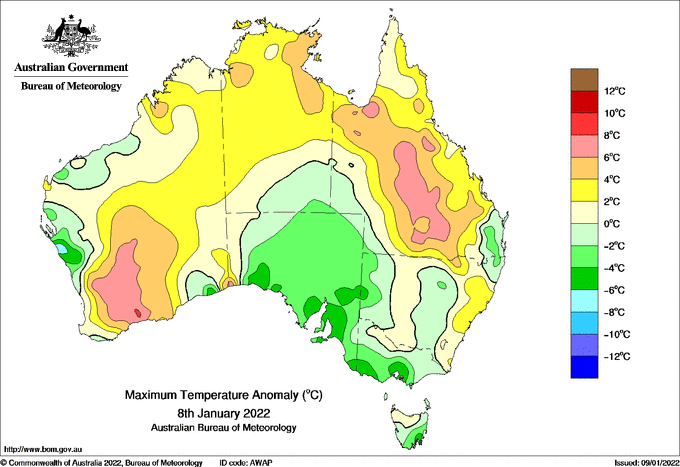 Observations and extremes for Saturday 08 JAN 2022