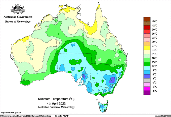 Observations and extremes for Monday 04 APR 2022