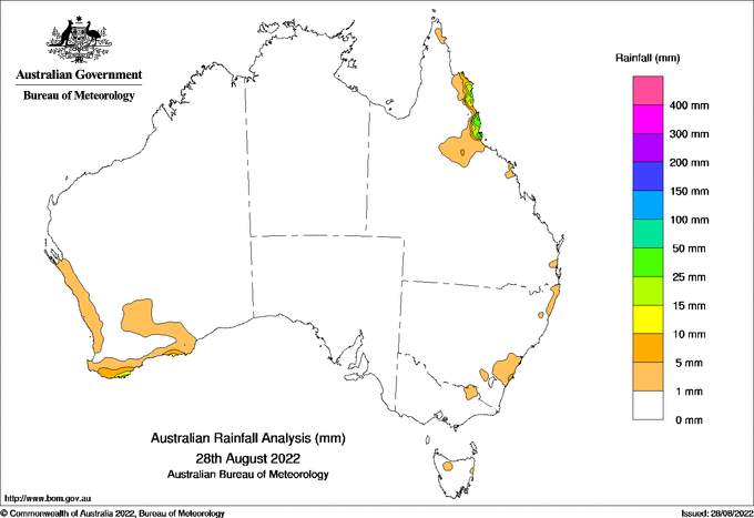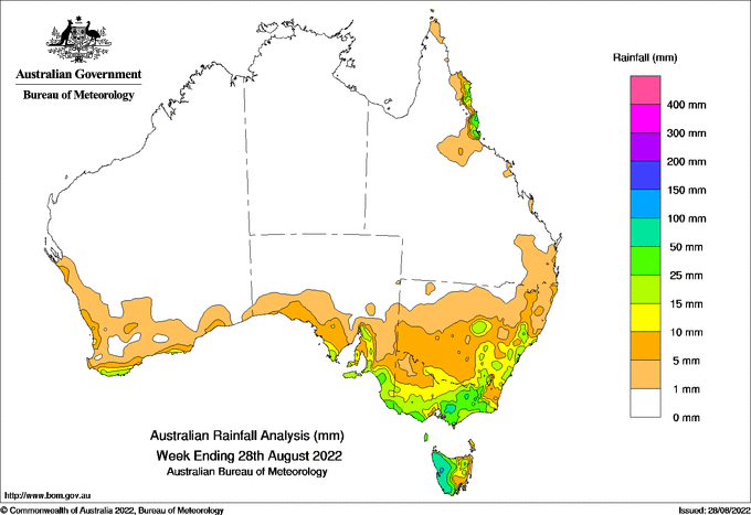 includes the top 5 totals nationally followed by all reported falls of 50mm or more. |