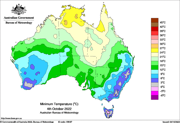 | Coldest for Tuesday 04 OCT 2022 |