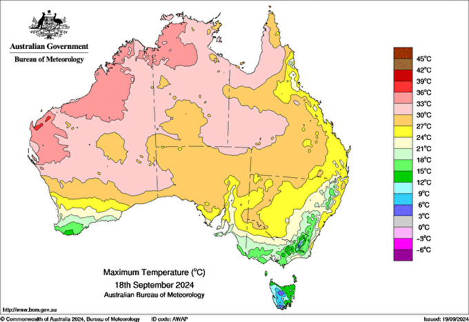 Observations and extremes for Wednesday 18 SEP 2024