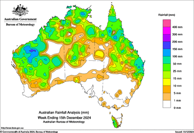 includes the top 5 totals nationally followed by all reported falls of 50mm or more. |