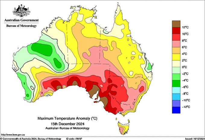| Lowest maximum temperature | Greatest variation below normal maximum |