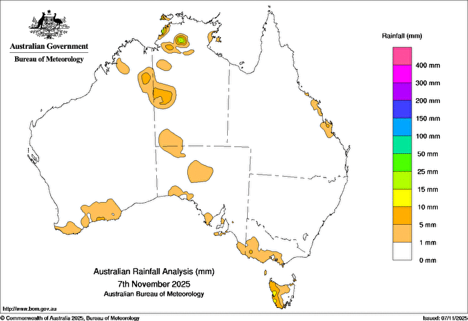 includes the top 5 totals nationally followed by all reported falls of 50mm or more. |