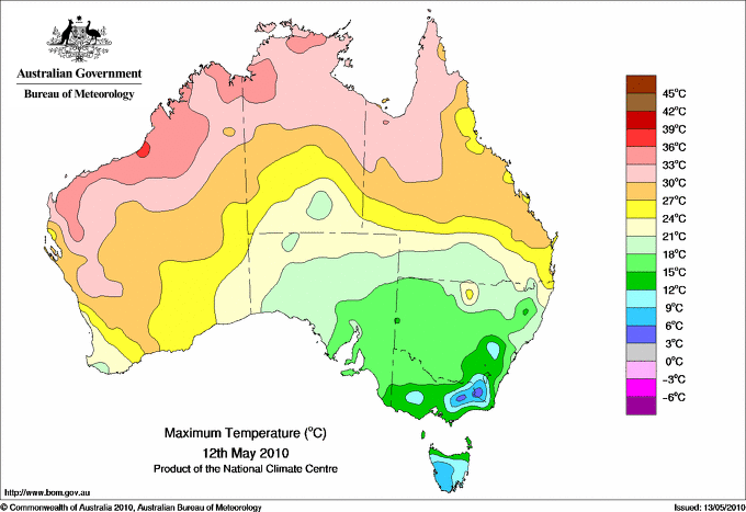 | Lowest maximum temperature | Greatest variation below normal maximum |