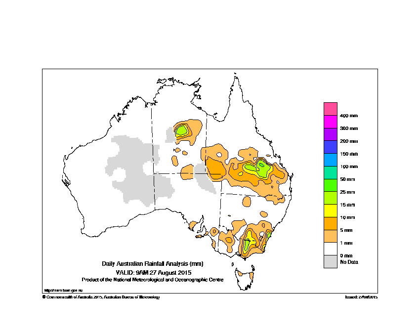 includes the top 5 totals nationally followed by all reported falls of 50mm or more. |