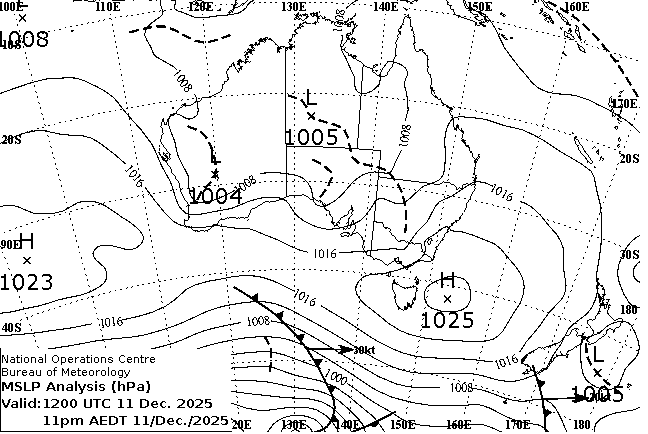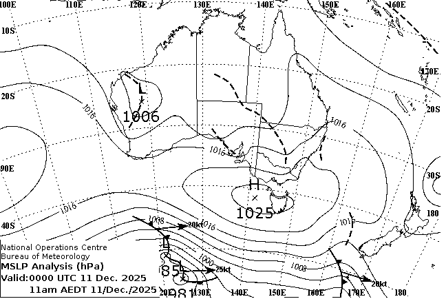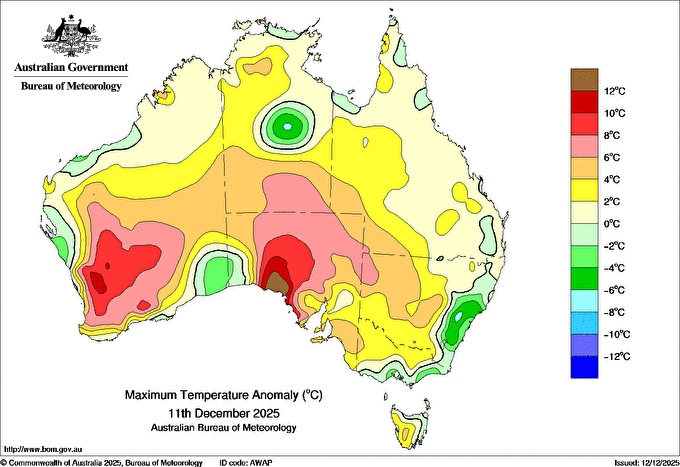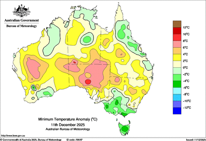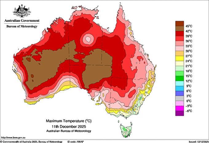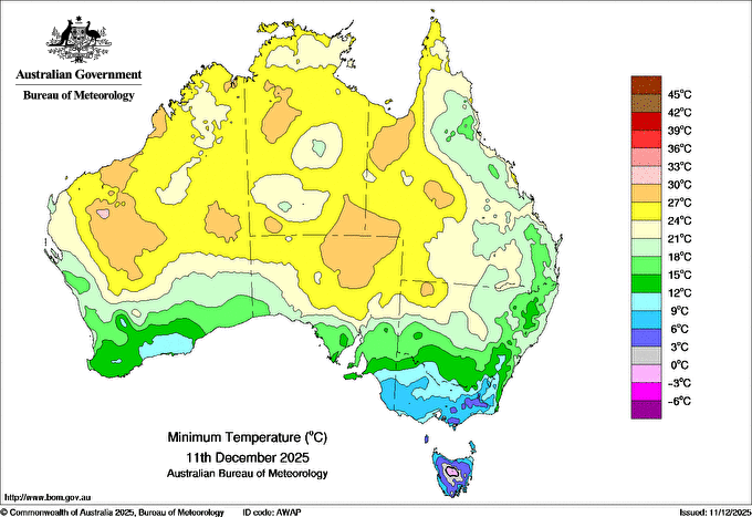 Observations and extremes for Thursday 11 DEC 2025