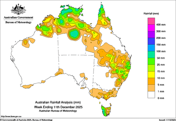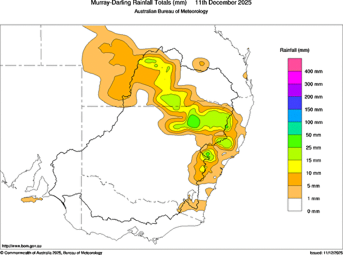 includes the top 5 totals nationally followed by all reported falls of 50mm or more. |