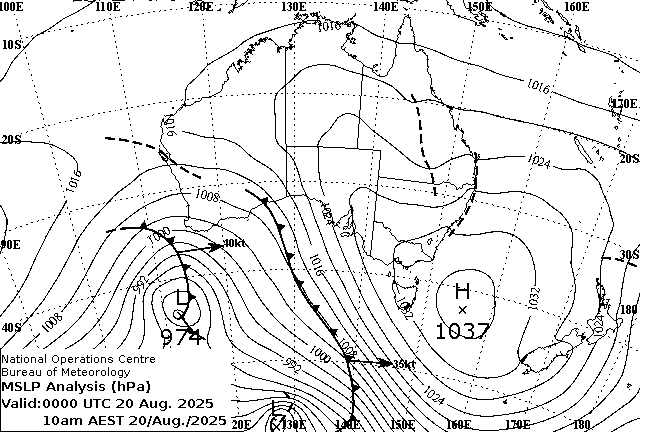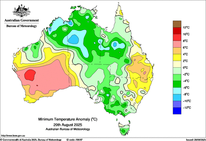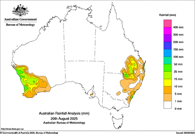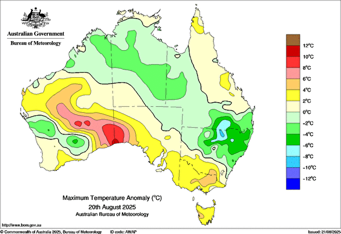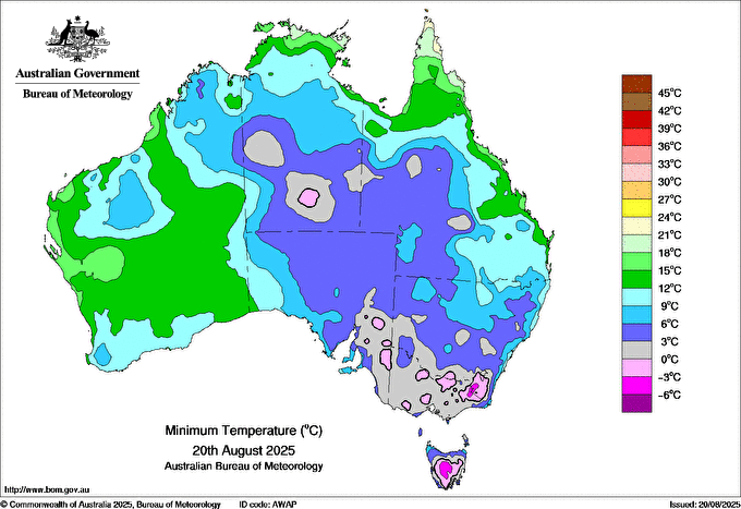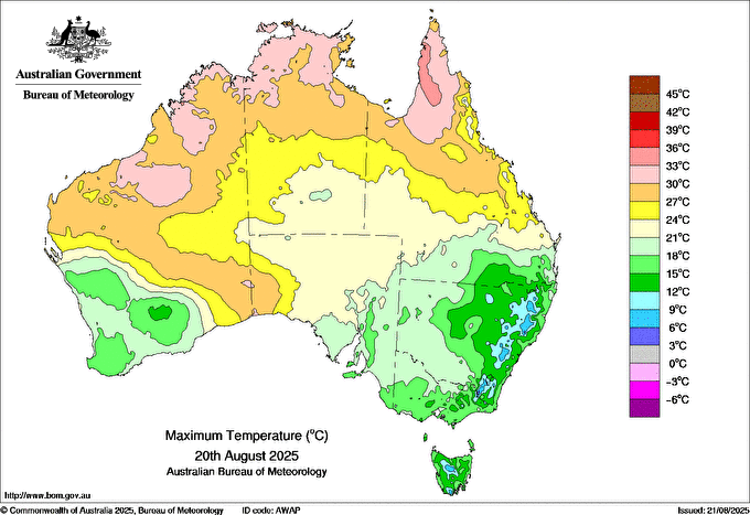 Observations and extremes for Wednesday 20 AUG 2025